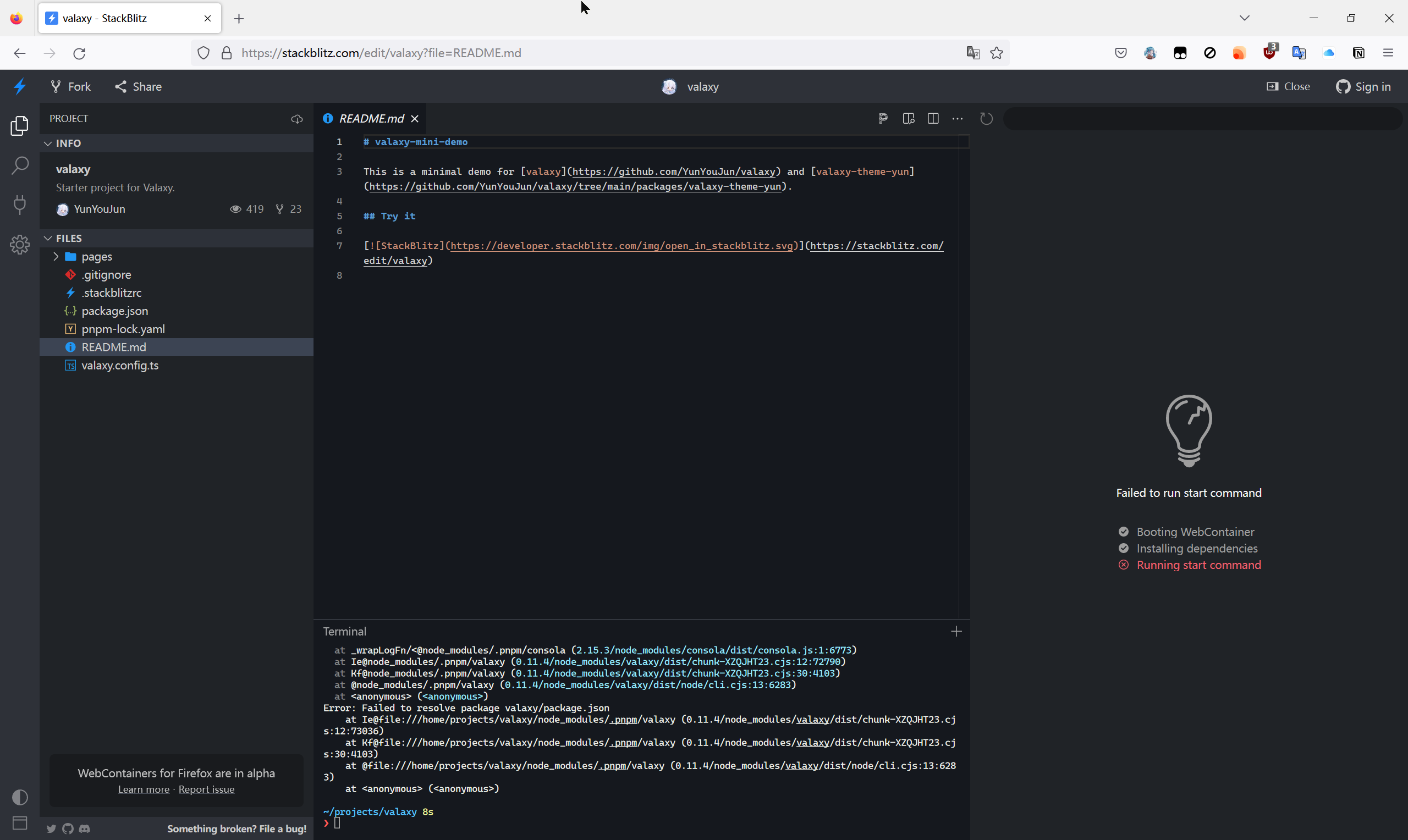 初看仓库的 README.md,觉得还挺有意思(还有热重载喔,这不得爽死),于是就按照文档上的说明在本地调试